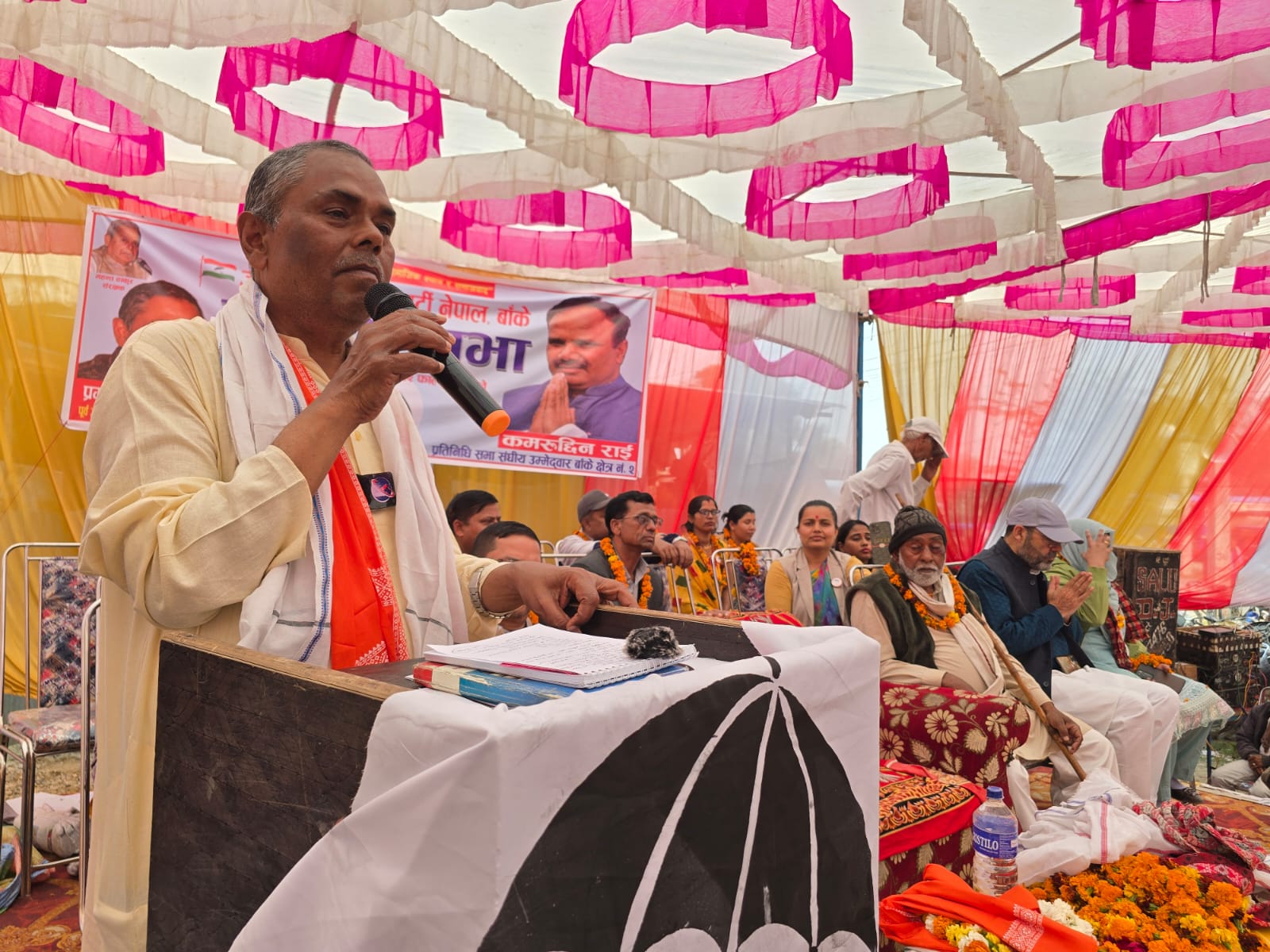 उनले ठूला दलहरुले मधेशी तथा मुस्लिम समुदायको कुनै पनि हितमा काम नगरेको बताए । उनले संविधानले मधेशी तथा मुस्लिम समुदायको पहिचान स्थापित गरेको उल्लेख गरे । त्यो अधिकार मधेश आन्दोलनबाटै सम्भव भएको पनि जिकिर गरे । आज कुनै पनि मधेशी तथा मुस्लिम समुदायका मानिसहरु शिर निहुराएर हिड्नु पर्ने अवस्था नरहेको समेत उनको भनाई छ । चुनावी सभालाई सम्वोधन गर्दै जसपा नेतृ अम्बिका काफ्लेले वैचारिक सिद्धान्त भएको पार्टी जसपामात्रै भएको बताईन् । उनले जसपाबाट चुनाव जित्ने र त्यसकै बलमा अहिले अरु पार्टीमा गएर चुनाव लड्नेहरुले धम्की दिने गरेको भन्दै त्यसको निन्दा गरिन् । उनले संघीयता जोगाउन र मधेश मुद्धालाई संरक्षण गर्न छाता चिन्हमा मत हाल्न पनि सबैलाई आग्रह गरिन् ।